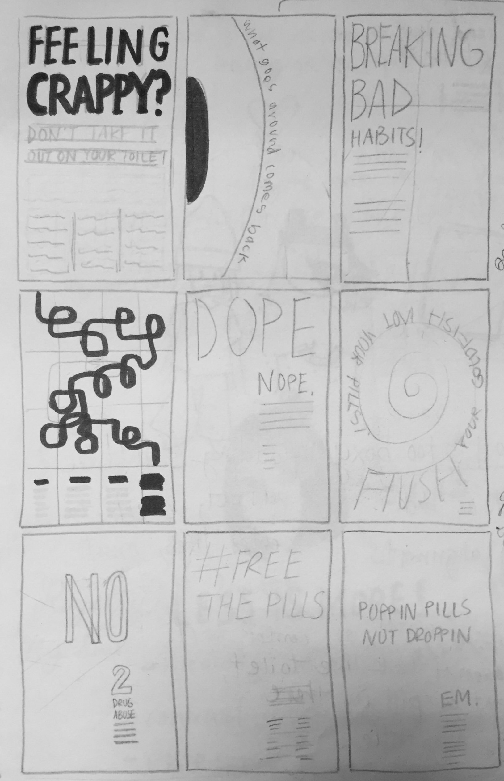 Building on the inspiration from Josef Müller-Brockmann, this set of posters promote the proper disposal of expired pills at a pill drive. Giving an edgy feel to an un-edgy activity.